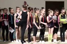 В нашей школе прошли дебютные соревнования для самых маленьких воспитанниц. Юные гимнастки справились с волнением и не подвели своих наставников. Первый старт дан. Идем дальше. На фото - наш тренер Елена Михайловна Тучак со своими воспитанницами.