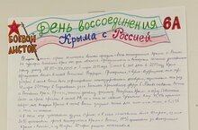 Среди 5-6 классов на протяжении недели проходил конкурс "боевых листков". Тема листков - "Воссоединение Крыма с Россией". Самые лучшие работы младших классов были выставлены на стенде школы. Любой желающий может оценить рисунки, в которых история, красота и любовь к Родине переплетаюся в единое целое.