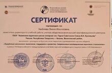 25 марта 2023 г. учитель обществознания высшей квалификационной категории, заместитель директора по учебной работе Хазбиева Лилия Ильгизовна приняла участие в Круглом столе педагогов "Одаренные школьники: выявление, поддержка и развитие. Современные инновационные практики и технологии" в рамках VIII Всероссийской (с международным участием) научной конференции учащихся им. Н. И. Лобачевского. Ее статья "Социально-профессиональное самоопределение через деятельность ученического самоуправления" опубликована в сборнике по итогам работы Круглого стола. 25.03.2023