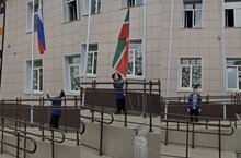 Каждый понедельник в нашей школе традиционно поднимают флаги РФ и РТ.