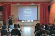 Общешкольное мероприятие в рамках предметной недели по профильному труду для обучащихся 5-9 классов во главе с учителем Андреем Александровичем.