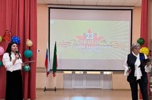 Общешкольное мероприятие в честь Дня защитника Отечества во главе с учителями Татьяной Александровной и Динарой Дамировной.