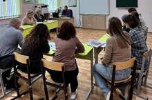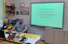 Заседание методического объединения учителей трудового обучения во главе с руководителем методического объединения Русланом Фоатовичем.