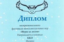 Поздравляем команду по игре "Что? Где? Когда?", занявшую первые и вторые места на межрегиональном фестивале интеллектуальных игр "Игры за лесом", состоявшемся в г. Переславль-Залесский с 14 по 16.02.2014 г.!