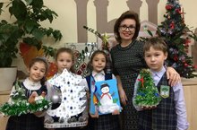 Ребята 2 Г класса ( классный руководитель Кулагина М.В.) решили поздравить любимых учителей с наступающим праздником, дополнив убранство школьной новогодней елки поделками в виде елочных украшений с поздравлениями. На уроке труда они изготовили самодельные игрушки ,написали на каждой поделке тексты с теплыми словами, пожеланиями в стихах родной школе , учителям , одноклассникам и повесили на елочку в холле школы. Не забыли вторклассники и про директора школы Галину Алексеевну!