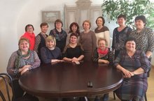 Анастасия Николаевна Орлова, Юлия Евгеньевна и Ольга Борисовна Капустина на встрече с учащимися старших классов школы.