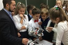 3 октября на уроке технологии в 4 Г классе ( классный руководитель Кулагина М.В.) состоялся поединок двух роботов! Причем собраны они были самими ребятами , посещающими занятия по роботехнике в детском центре «Глобус». Увлекательный мастер-класс провел преподаватель роботехники Ашрапов Айдар Завитович. Он рассказал о возможностях конструкторов EV 3, наглядно продемонстрировал модели в действии, раскрыл маленькие секреты для юных программистов и воодушевил всех на новые открытия в этой области.