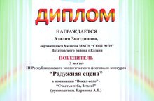 Поздравляем ученицу 8 класса Зиатдинову Азалию и ученицу 2 класса Зиатдинову Розалину, занявших 1 и 2 место на III Республиканском экологическом фестивале-конкурсе «Радужная сцена». Юный сестры-вокалистки исполнили музыкальные композиции, посвященные любви к природе и охране окружающей среды. Желаем дальнейших творческих успехов!