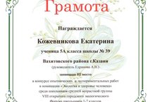 Поздравляем ученицу 5А класса Кожевникову Екатерину с III местом в конкурсе опытнических и экспериментальных работ в номинации «Экология и здоровье человека» VIII открытого городского Форума школьников 1-7 классов «Зилантенок». На форуме Катя представила свой проект, посвященный проблеме раздельного сбора мусора, «Мусор – не царское дело? Не думаю!». Желаем юного биологу и экологу дальнейших успехов!