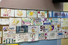 Накануне дня рождения школы в рекреации 3 этажа появилось огромное полотно с открытками «С юбилеем, родная 39-я !». Свои поздравления разместили ученики разных классов. Акция началась месяц назад, и вот он - труд юных художников, который создал пёстрый по цветам и словам нарядный узор. Спасибо, дорогие ребята!!!