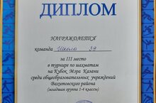 30 ноября команда МАОУ "Школа39", в составе учащихся 4а и 4б классов: Ананьев Тимур, Галимова Алина, Григорян Константин и Шафиков Мансур, была награждена дипломом. Команда заняла 3 место в турнире по шахматам на Кубок Мэра Казани среди общеобразовательных учреждений Вахитовского района. Поздравляем и желаем успехов!