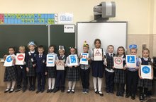ЮИДовцы 1б класса совместно с руководителем кружка «Юные пешеходы» А.Н.Щавлевой посвятили всех первоклассников в пешеходы. Юные инспекторы познакомили младших школьников с дорожными знаками, рассказали о важности и необходимости соблюдения ПДД. В конце мероприятия первоклассники посмотрели профилактический фильм «Пешеходный переход!».