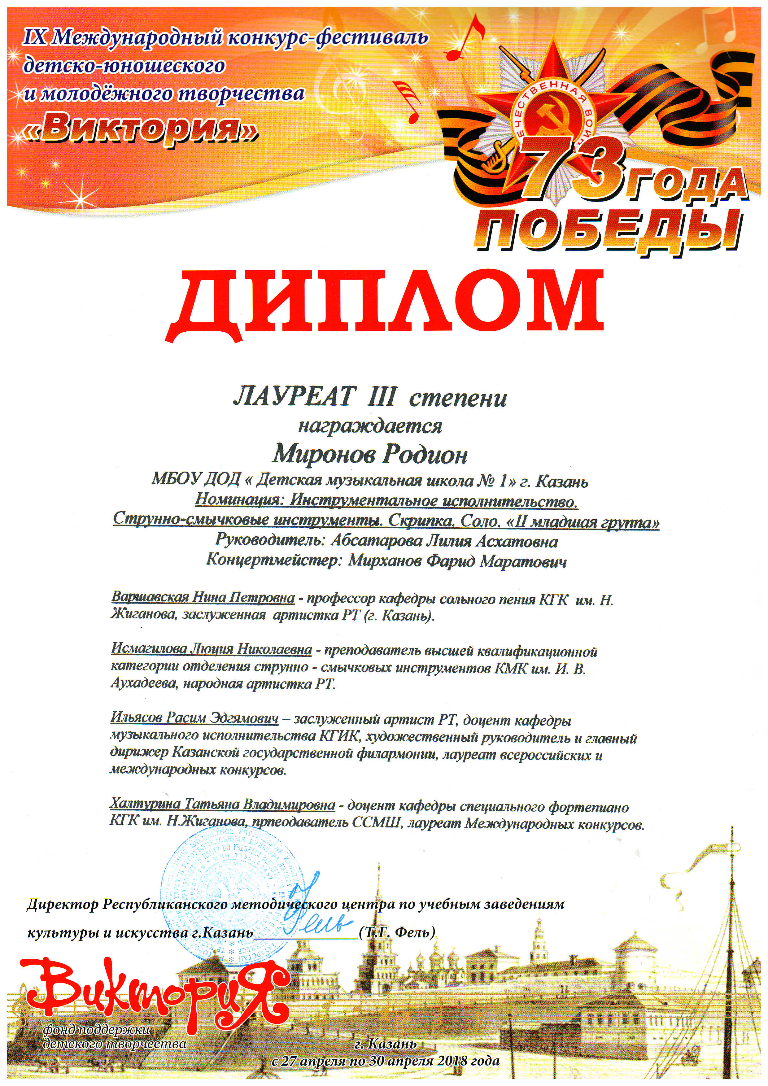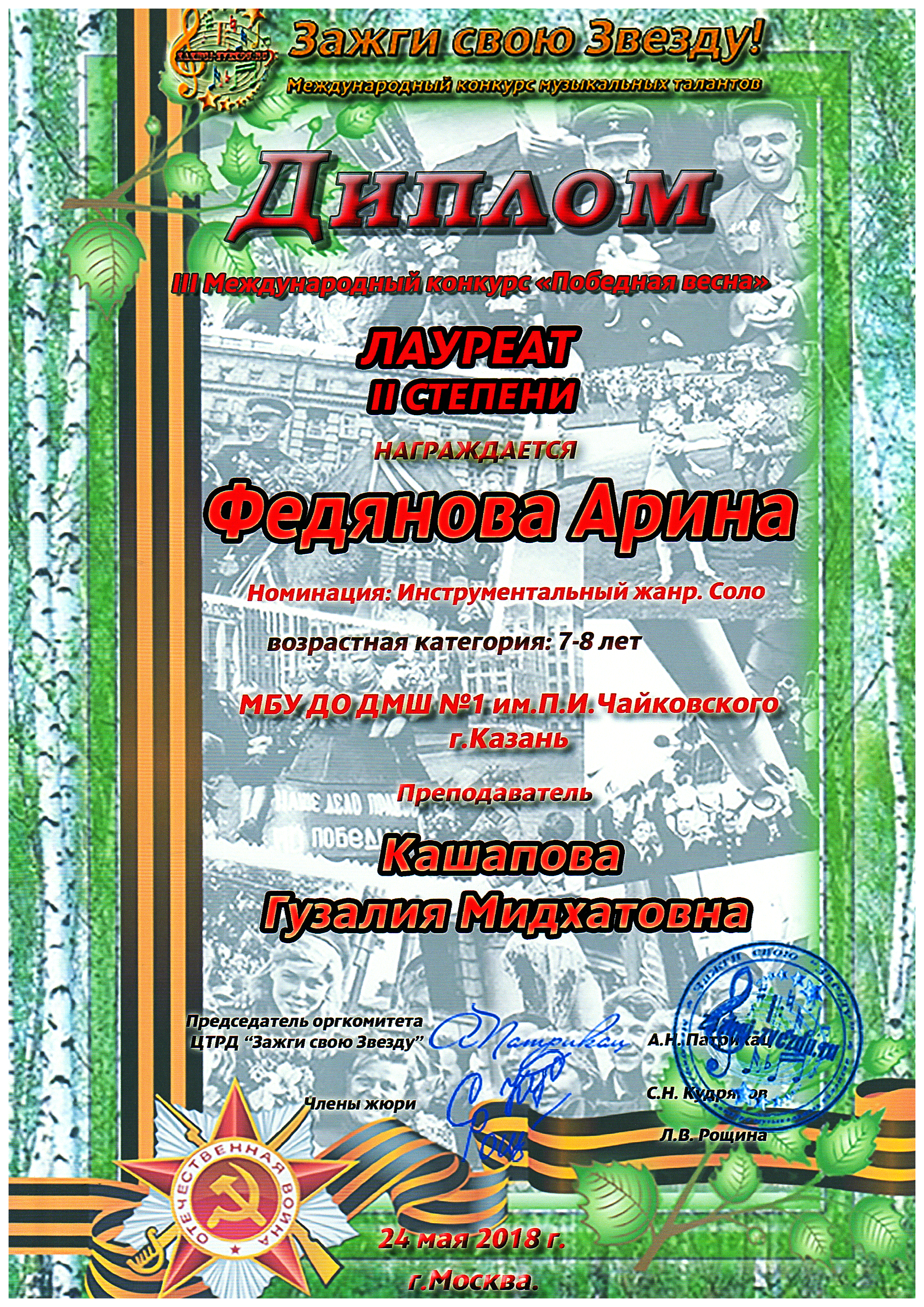III Международный конкурс "Победная весна" - Федянова Арина, Лауреат II степени;