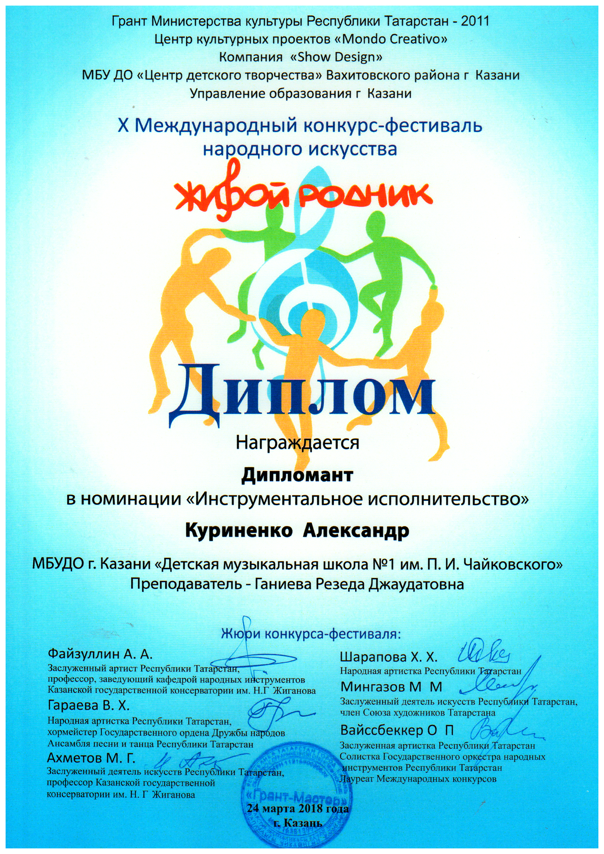 Международный конкурс "Детство цвета апельсина" - Гайнутдинова Диана, Лауреат I степени;