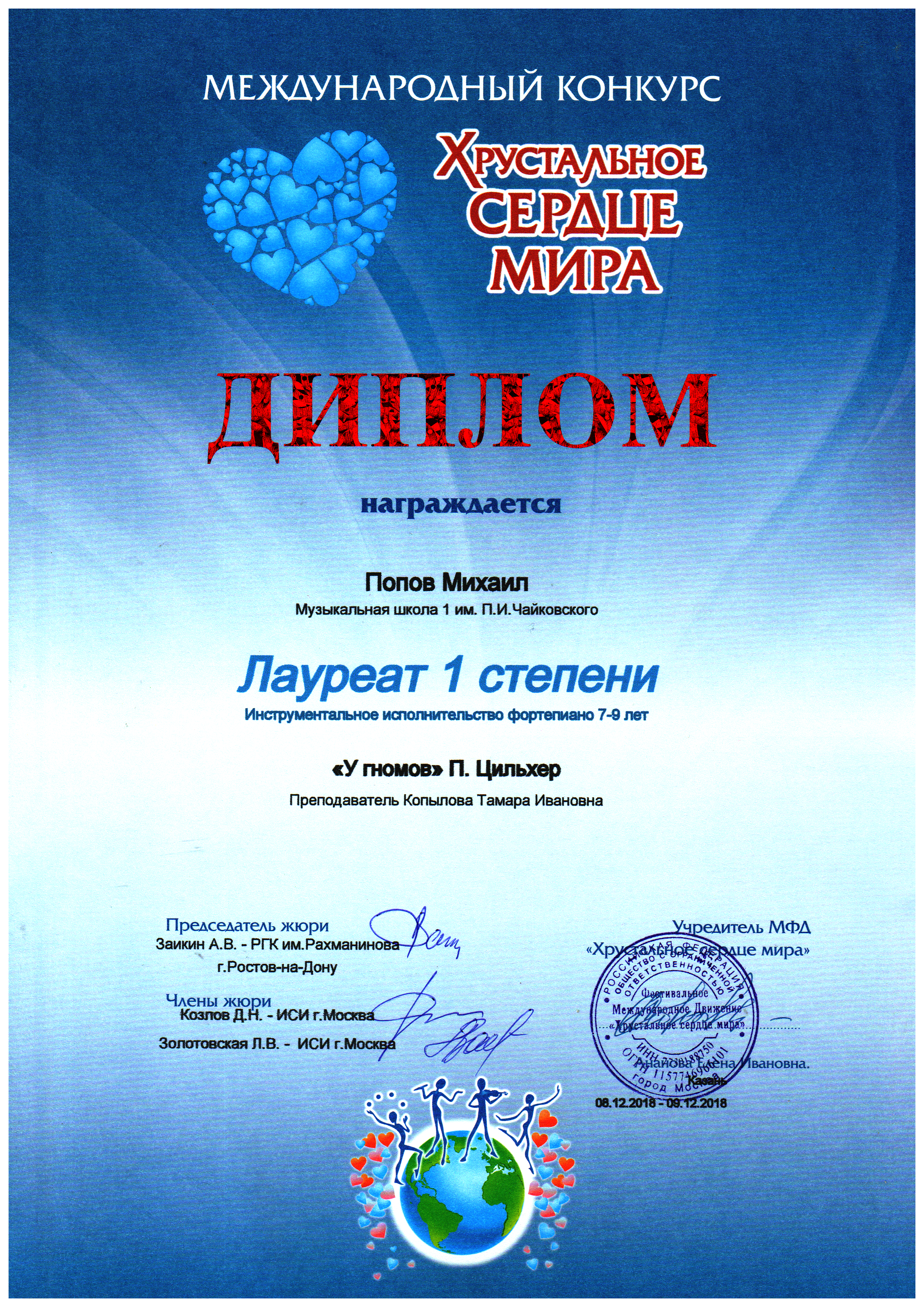 Международный фестиваль-конкурс "Взлёт" - Севастьянов Марк, Лауреат I степени;
