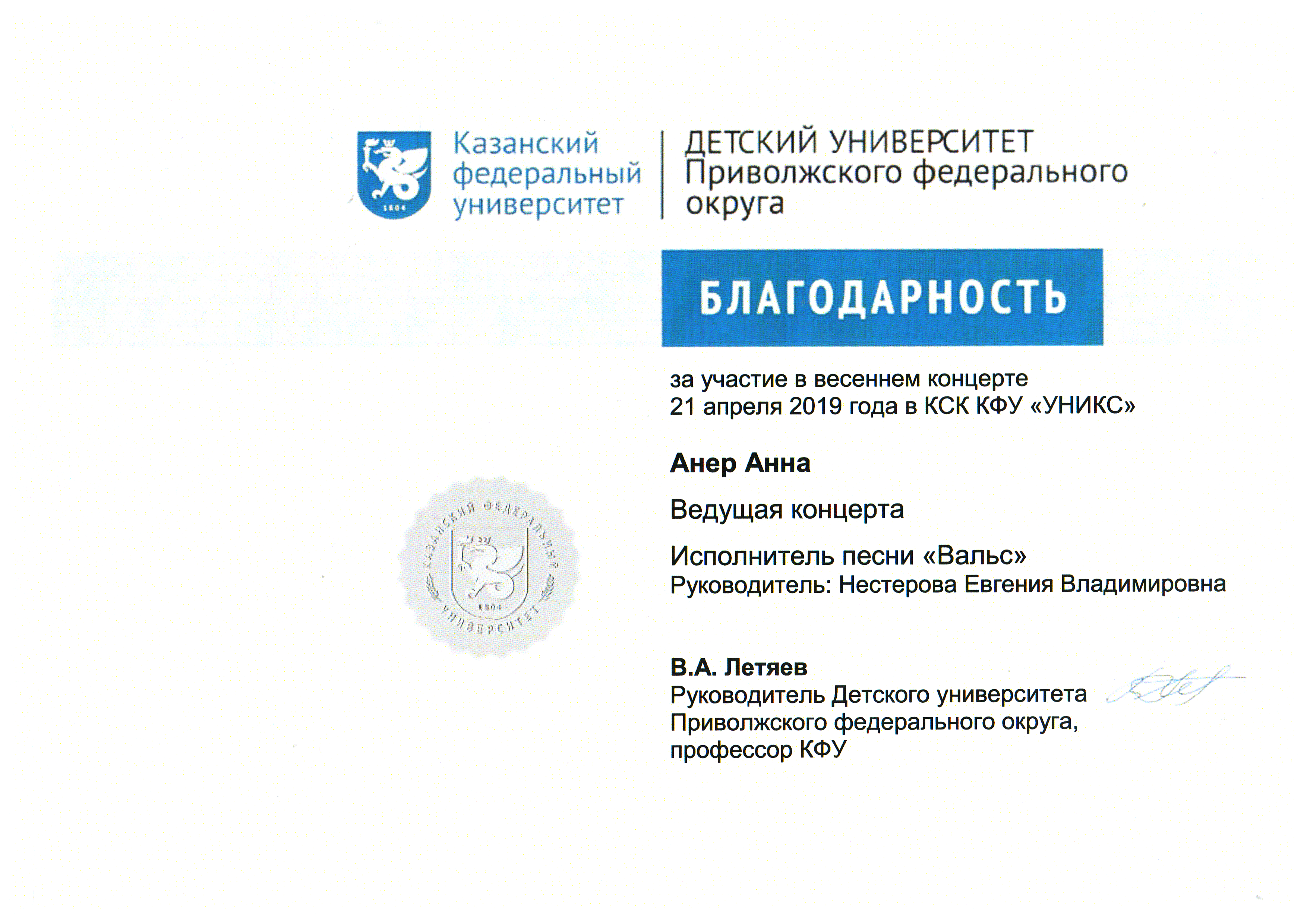Концерт Казанского камерного оркестра "La Primavera" - Стальмахова Мария, Благодарность;