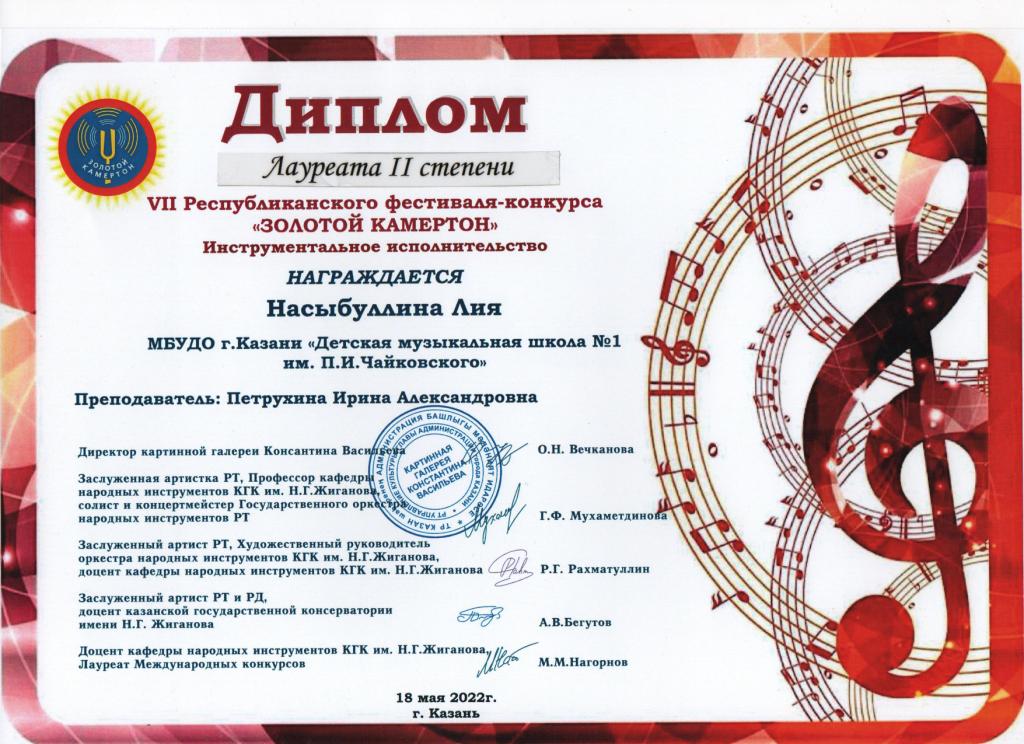 VII Республиканский фестиваль-конкурс "Золотой камертон" - Насыбуллина Лия, Лауреат II степени, класс Петрухиной И.В.;