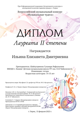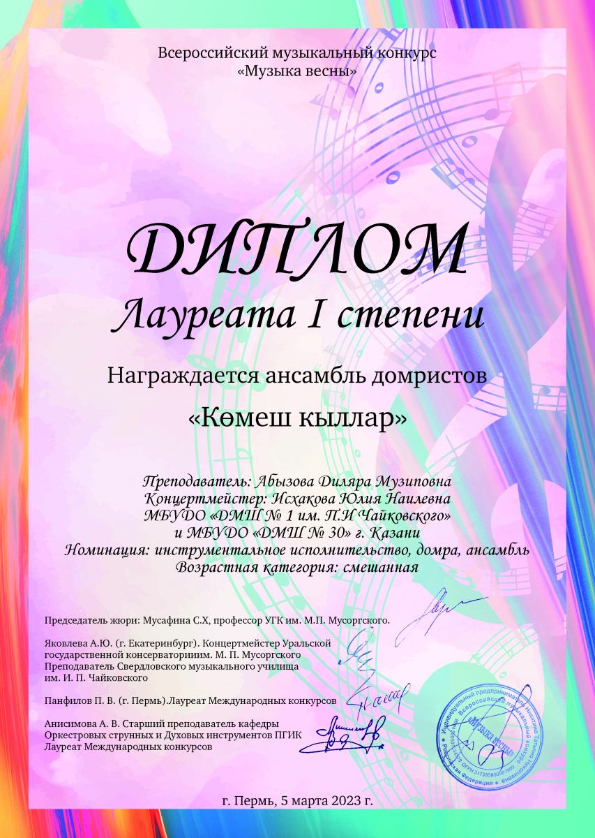 | Короткое название: | МБУДО "Детская музыкальная школа №1 им. П.И. Чайковского" г.Казани |