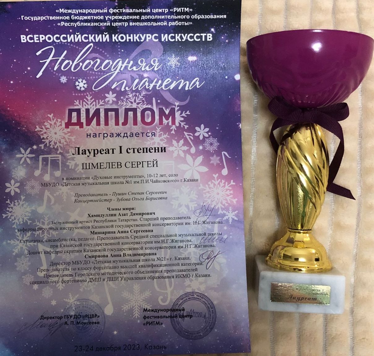 IV Всероссийский конкурс "Классическая гитара в Казани" - Нагорнов Илья, Лауреат III степени, класс Шайхутдиновой Г.Р.;