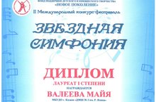 II степени: Ильина Лиза (преп. Сабирьянова Ф.Г.); Гайнуллина Алина (преп. Валеева Г.М.); Зайнеева Малика (преп. Коптелева Л.В.)