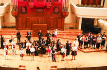 Присутствовавшие в зале почетные гости, директора музыкальных школ, старейшие преподаватели и родители получили огромное удовольствие от выступления учащихся школы, приветствовали громкими аплодисментами. Интересно подобранная программа, разнообразие представленных инструментов, яркие выступления хора, солистов и ансамблей - все это способствовало созданию праздничной, приподнятой атмосферы юбилейного концерта!