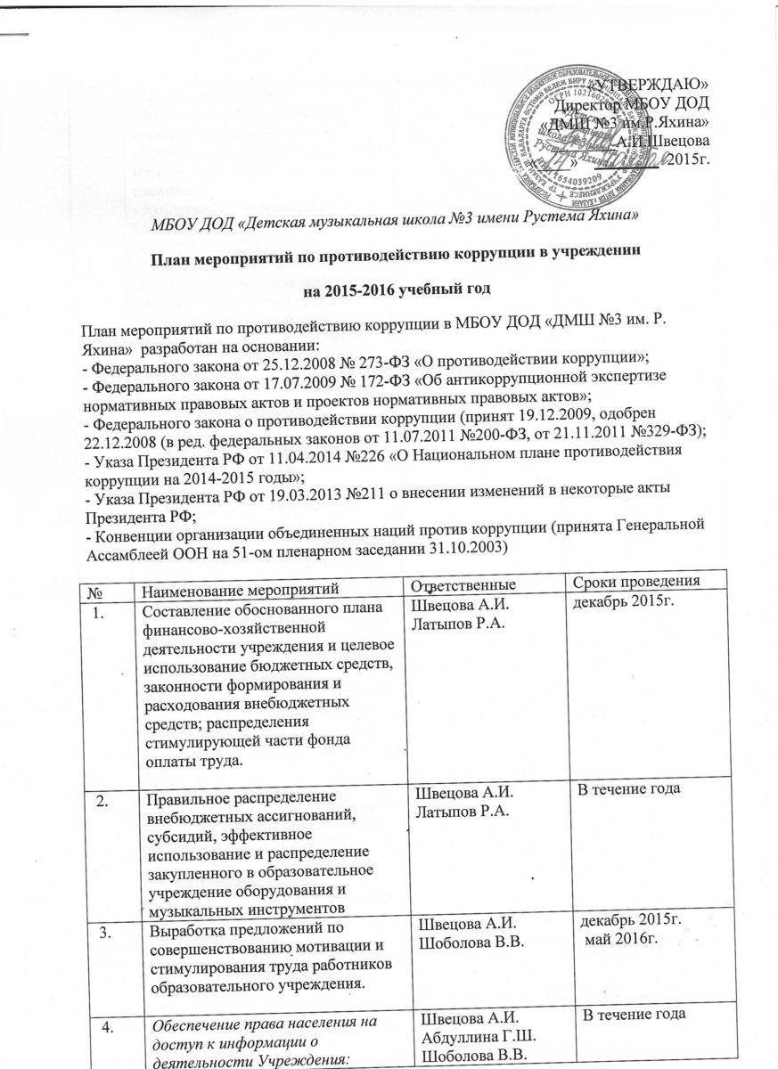 План мероприятий по противодействию коррупции в учреждении на 2015-2016г.