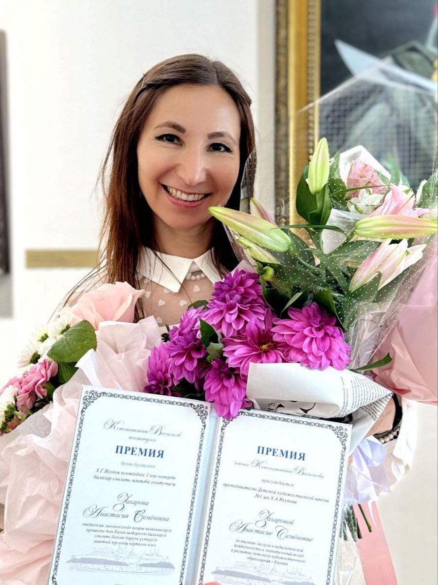 Наша несравненная Захарова Анастасия Семëновна стала лауреатом премии имени Константина Васильева за высокие заслуги в педагогической деятельности и значительный вклад в развитие детского художественного образования г. Казани.