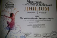 Дуэт Хамис Магомедовой и Булата Ткебучава - учащихся Многонациональной воскресной школы г.Казани стал обладателем диплома I степени VI суперфинала "Салют талантов", прошедшего в Санк-Петербурге, в номинации "хореографическое творчество".