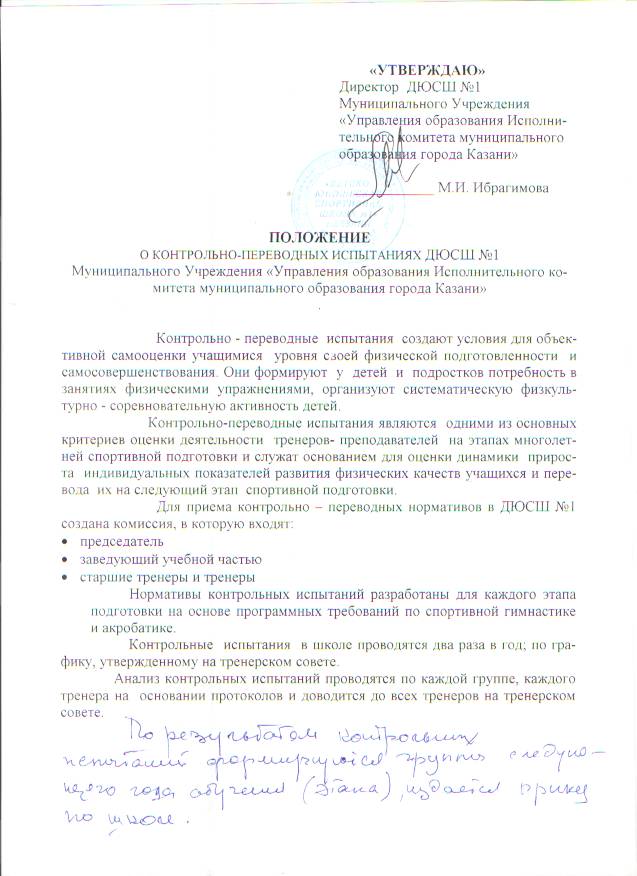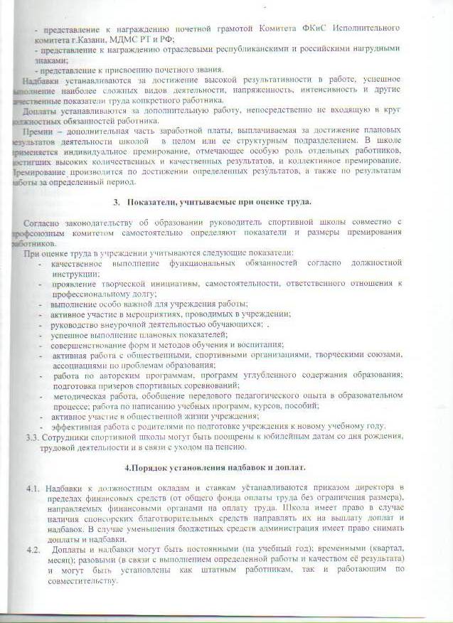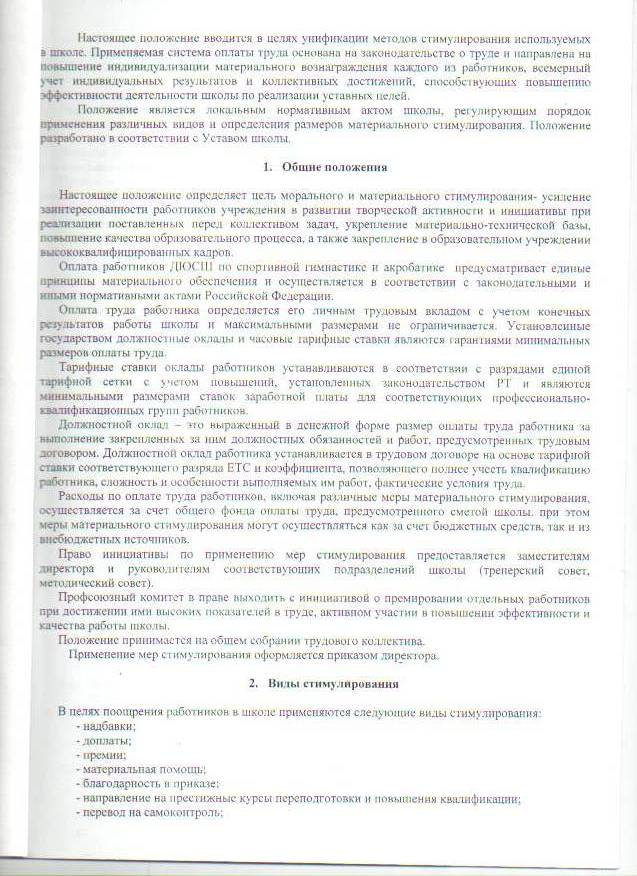 Положение об условиях оплаты труда работников МБУ «СШОР "Первая"» по спортивной гимнатсике и акробатике г.Казани док1 док2 док3