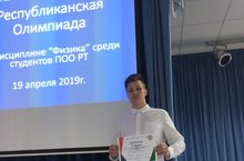 19 апреля 2019 года, в Зеленодольском механическом колледже, прошла республиканская физическая олимпиада среди студентов 1 курса ПОО РТ, в которой принял участие студент группы 18-01 Елисеев Родион (руководители: преподаватели физики Санаткина Н.Л. и Хайруллин Р.Л.). Родион отлично справился с конкурсными заданиями и занял 3 место. Поздравляем участника и руководителей с успешным участием в олимпиаде.