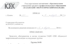 Зачислить абитуриентов в состав студентов ГАОУ СПО "Казанский энергетический колледж" в следующие группы: