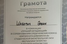 Капитан команды студент группы 52-02 Шаботич Эрвин за свою активную игру получил Грамоту как "Лучший нападающий".