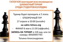 По 26 апреля включительно принимаются заявки на Шахматный турнир среди студентов нашего колледжа. Записывайся и принимай активное участие, всем участникам гарантирован сертификат, а победителям - дипломы и медали, а также денежное вознаграждение!