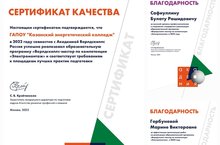 Отличное завершение 2022 г. ГАПОУ "Казанский энергетический колледж" получил Сертификат качества за успешную и качественную подготовку Экспертов по стандартам Ворлдскиллс. Колледж на протяжении нескольких лет доказывает свое мастерство в компетенции "Электромонтаж", он не стоит на месте, а идет вперед с новыми задачами и целями. Одну цель мы покорили - вырастили Сертифицированного Эксперта - ведущего преподавателя программ по стандартам Ворлдскиллс Сафиуллина Булата Рашидовича. Все мы прекрасно понимаем, что не бывает побед одного человека. За победой или покорением, той или иной вершины стоят люди, в нашем случае - это администратор площадки Ворлдскиллс - Горбунова Марина Викторовна.