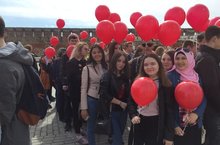 Студенты колледжей запускали в небо красные шары символизируя нашу память о погибших воинах в годы Великой Отечественной войны 1941-1945 годов.