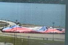 Самый большой российский флаг развернули у казанской Чаши