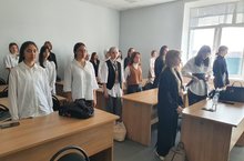 В Казанском колледже технологии и дизайна утро понедельника началось с линейки, где торжественного внесли Знамена и исполнили Гимны Российской Федерации и Республики Татарстан.