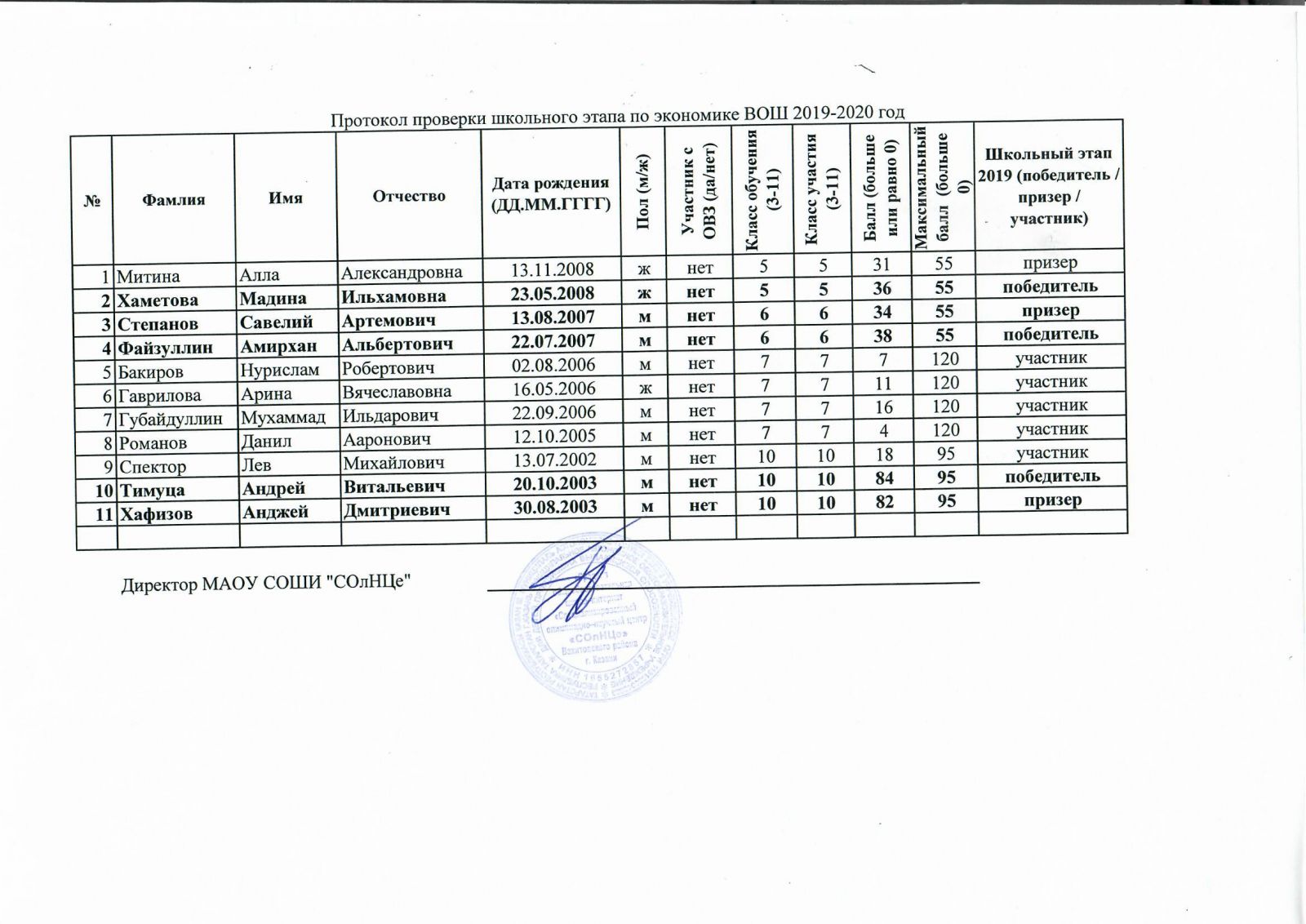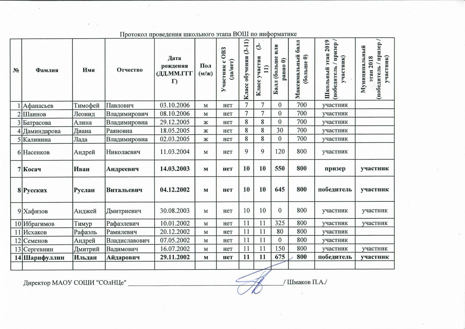 Протоколы проведения школьного этапа