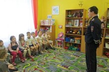 Сегодня в детском саду состоялась встреча воспитанников с инспектором по пропаганде ОГИБДД по Вахитовскому району. Он провёл с детьми познавательную беседу- викторину по ПДД. Дети с желанием и интересом слушали и отвечали на вопросы.