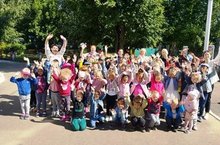 Забавные дорожные приключения сегодня произошли в нашем детском саду. Светофору и детям выдалась непростая задача – научить правилам дорожного движения Незнайку, который приехал к детям на самокате. Выяснилось, что по дороге он совсем не соблюдал правила дорожного движения. На подмогу ребятам, сказочным образом появилась старушка Шапокляк, которая проверила Незнайку на знания правил дорожного движения. Оказалось, что Незнайка все путает. Поэтому Шапокляк, Светофор вместе с детьми рассказали правила дорожного движения и показали герою дорожные знаки. Ребята детского сада ЗА БЕЗОПАСНУЮ ДОРОГУ!