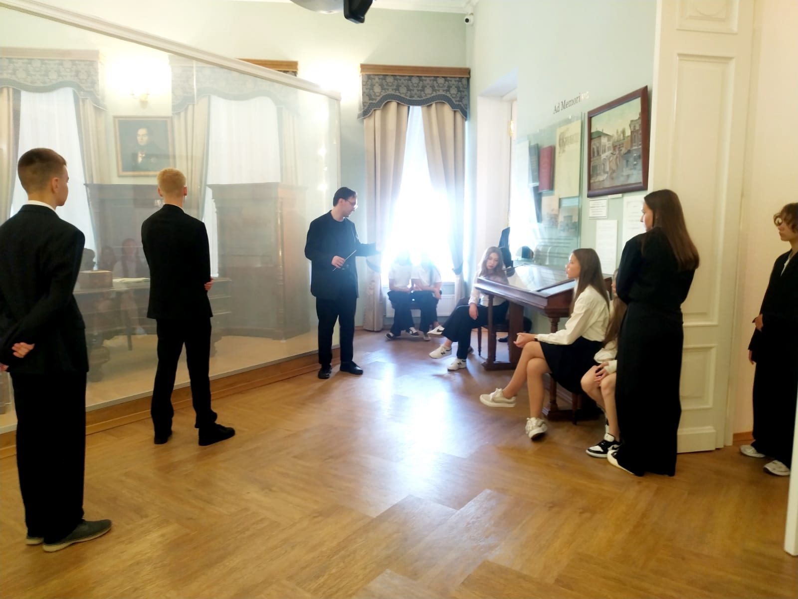 Опубликовано: 04.09.20252 сентября учащиеся 10А класса побывали на экскурсии в Музее Н.И. Лобачевского КФУ.. Здесь десятиклассники больше узнали о жизни великого геометра, его работе на посту ректора университета.