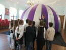 И, пожалуй, самое впечатляющее за сегодня: все классы школы побывали в мобильном планетарии, купол которого разместился в актовом зале.