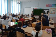 Бөтенроссия астрономия дәресләре бүген дә дәвам итте. Кызыклы һәм мавыктыргыч дәрес 2В сыйныфында узды. Укучылар зур кызыксыну белән иң борынгы фәннәрнең берсе булган астрономия фәне белән таныштылар, шулай ук Космос ничек үзләштерелде, хайваннарның һәм бөҗәкләрнең кайсысы космоска җибәрелгән дигән сорауларга җаваплар таптылар.