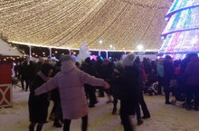 Бәйрәм мәйданчыгында яңа ел өйләре эшли, анда сувенирлар сатып алырга, кайнар чәй белән җылынырга, шулай ук традицион татар ризыкларыннан авыз итәргә мөмкин.
