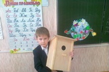 1 нче “Б” сыйныфы укучысы Рәкыйпов Динар да әтисе белән бергәләп сыерчык оясы ясаган. -