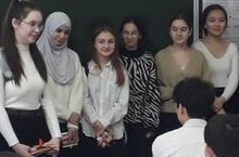 Укучы кызлар егетләрне бәйрәм белән котладылар, матур теләкләр җиткерделәр, бүләкләр тапшырдылар. -