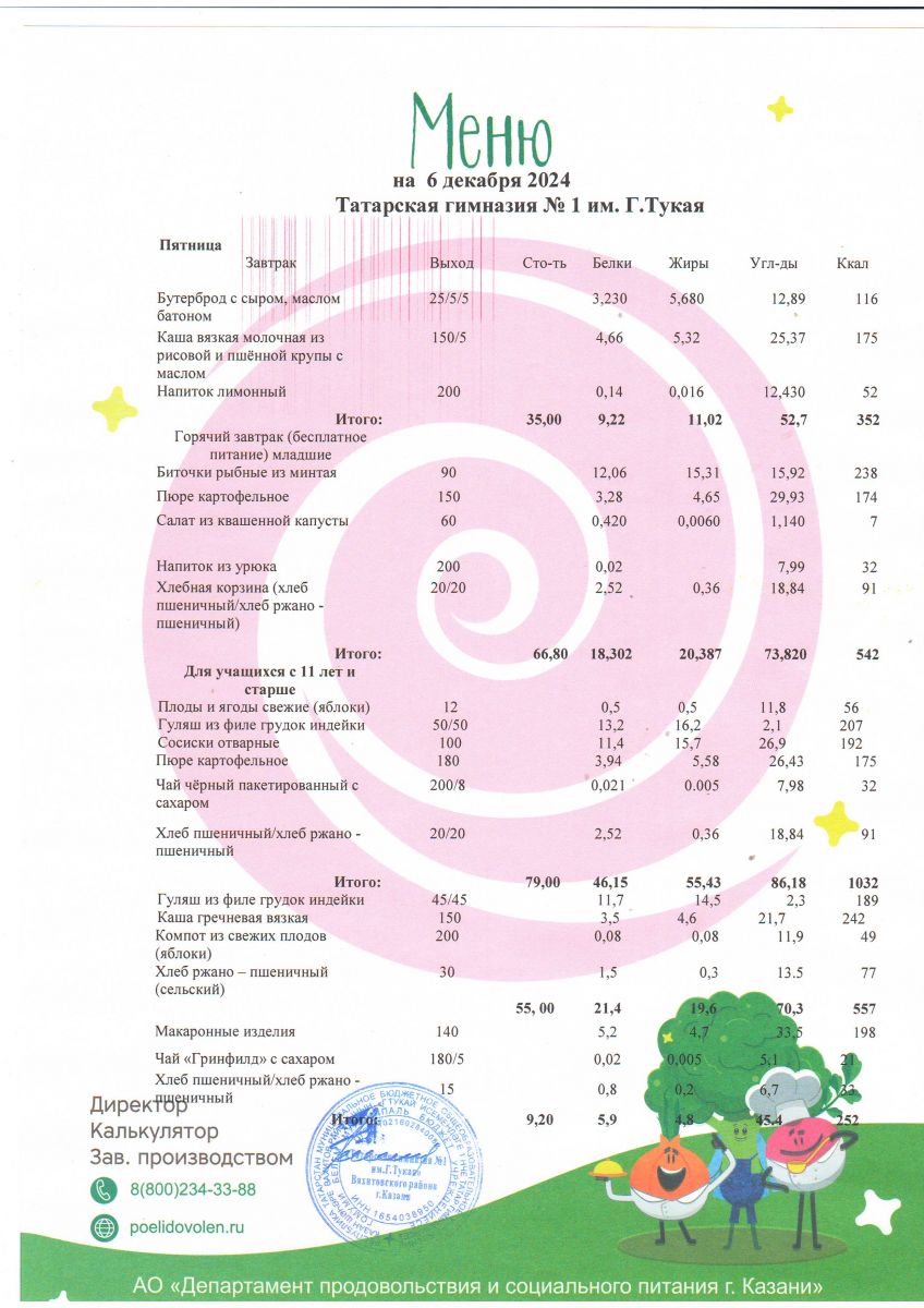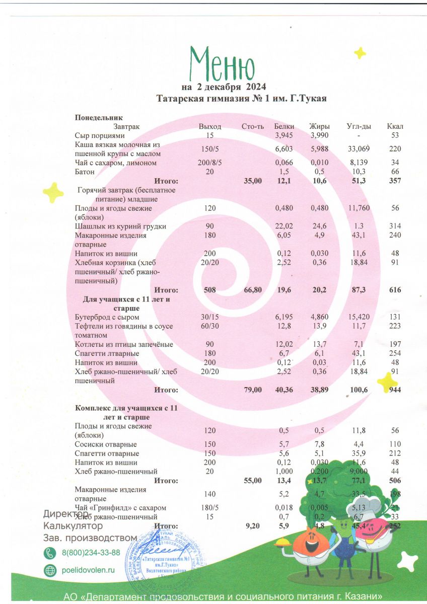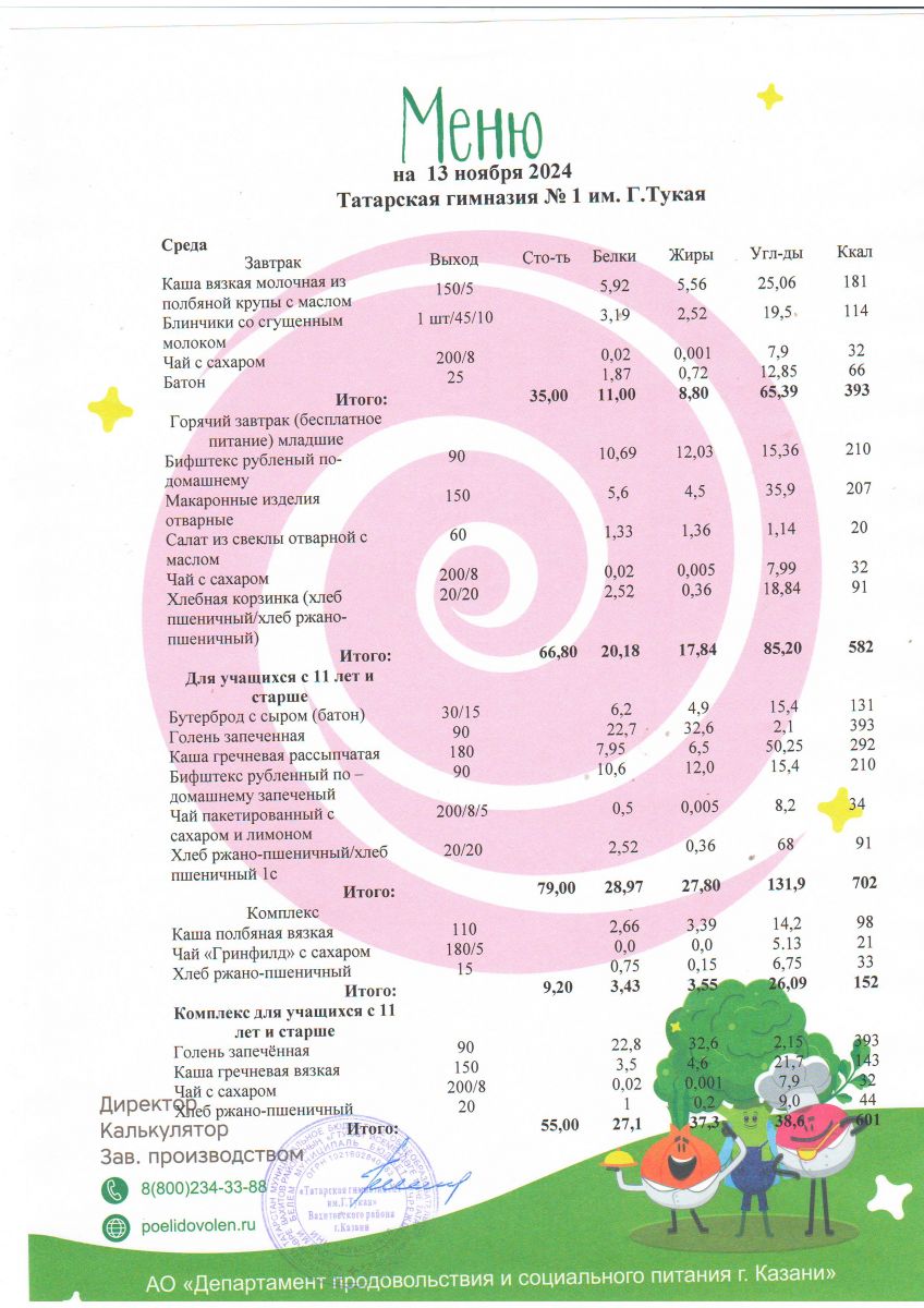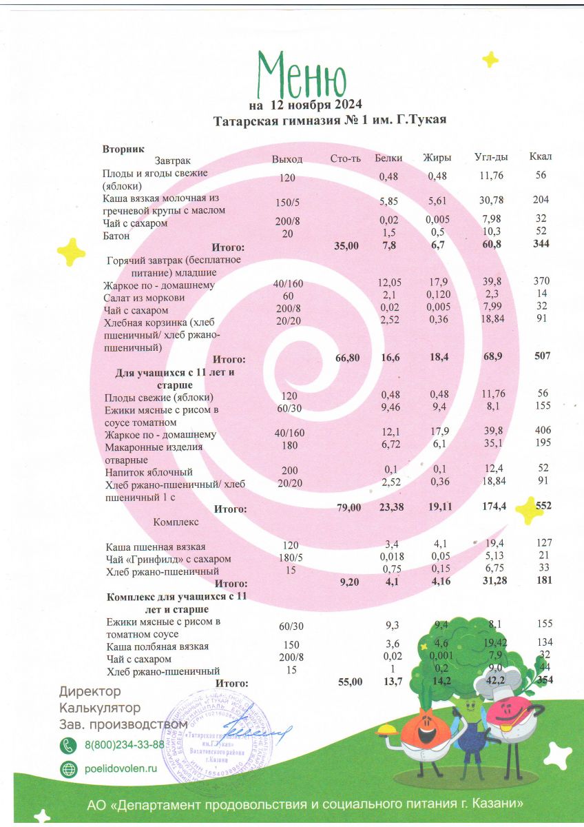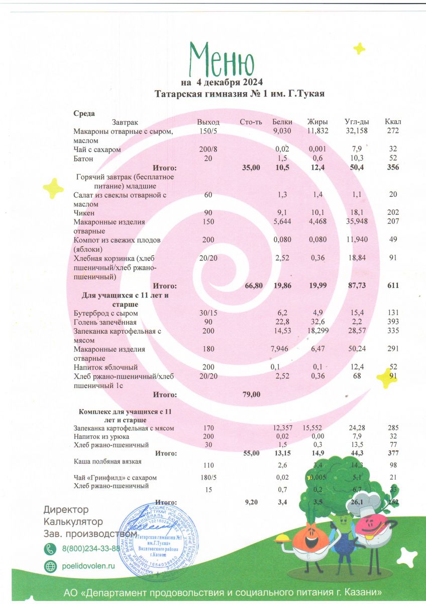 3. Диетическое меню: диетическое меню в образовательной организации отсутствует.