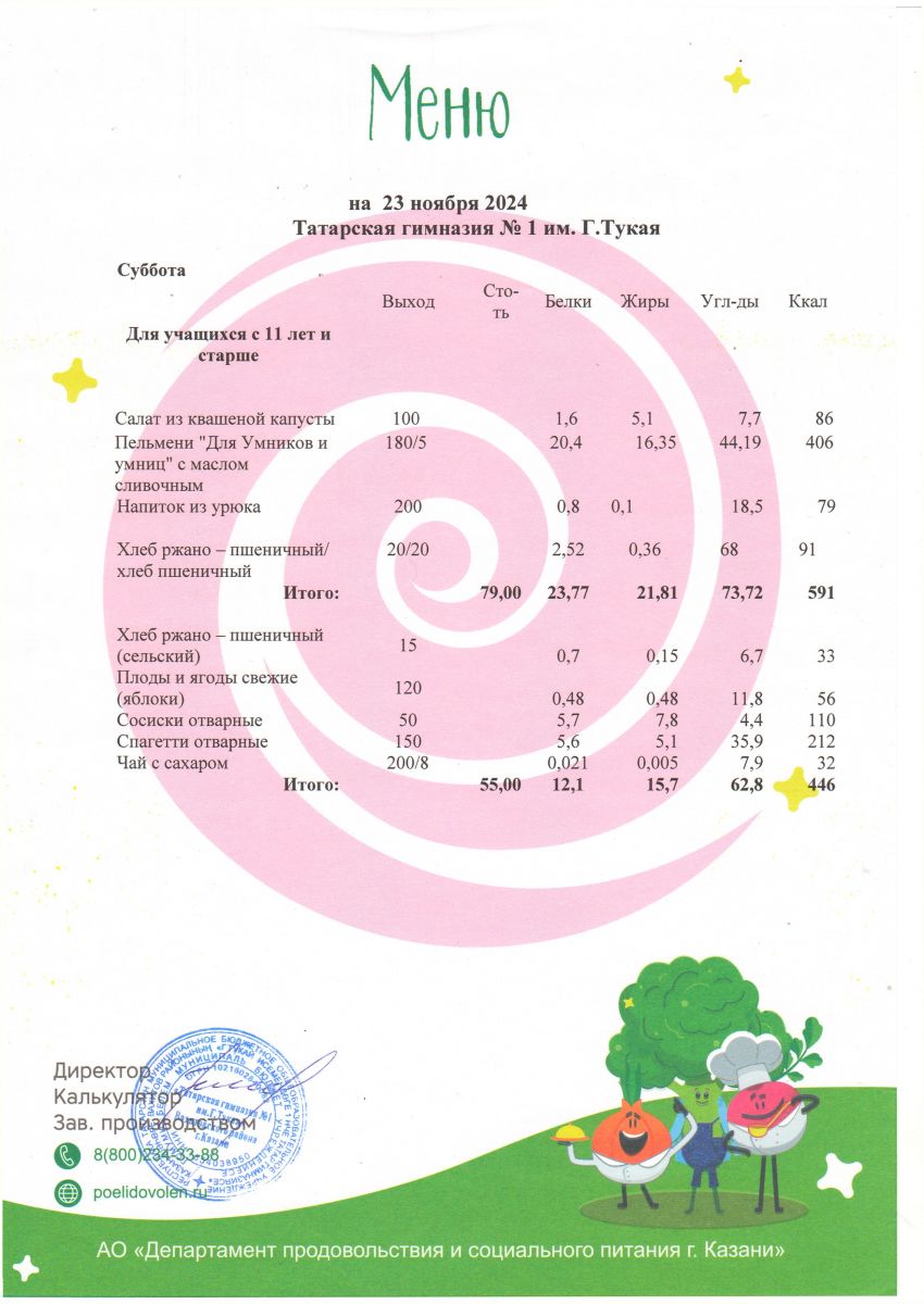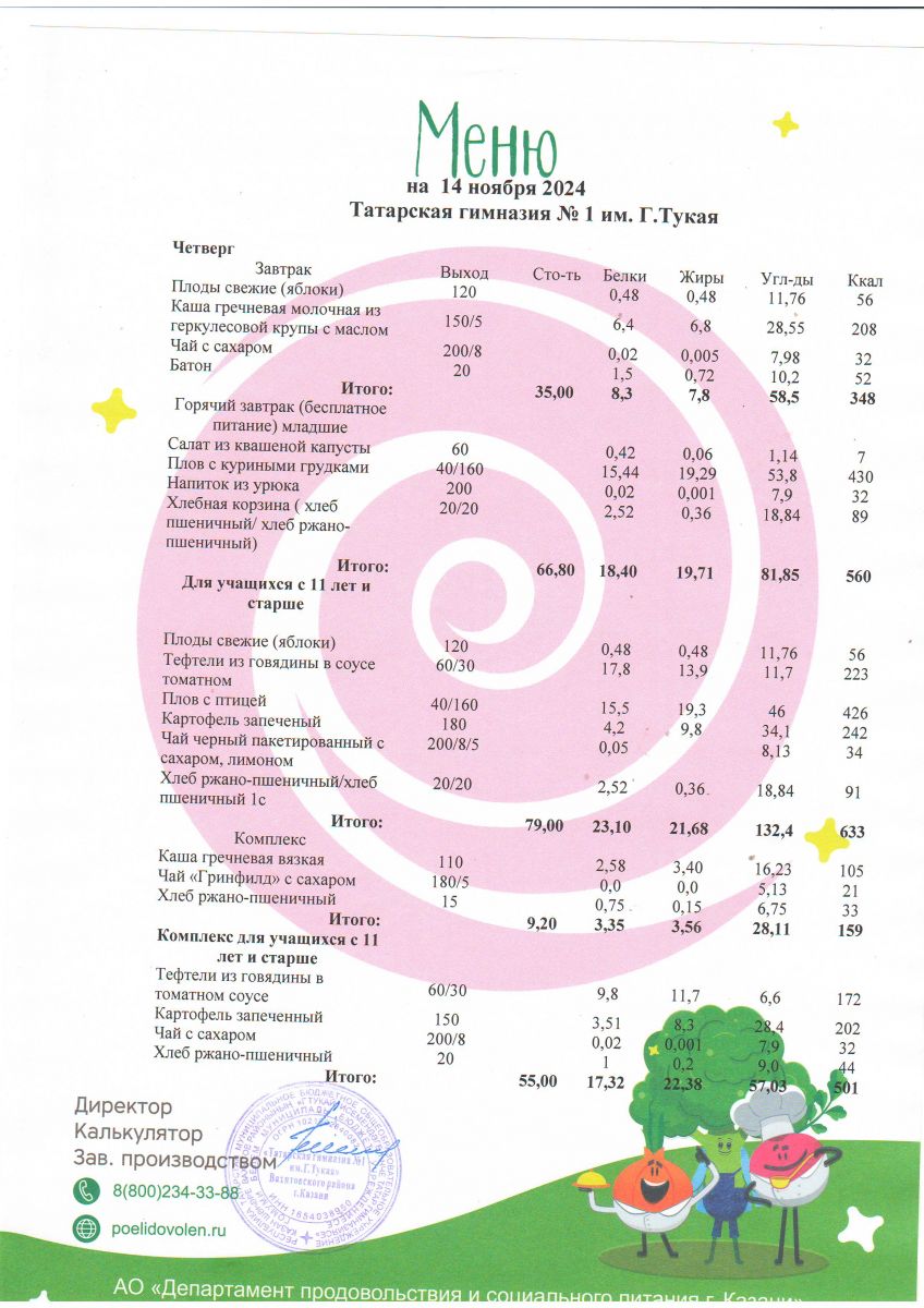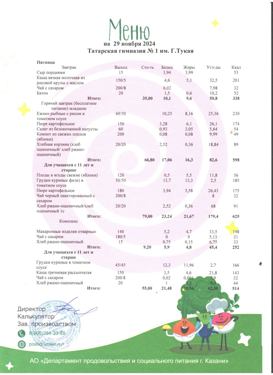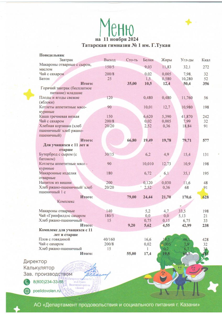 3. Диетическое меню: диетическое меню в образовательной организации отсутствует.