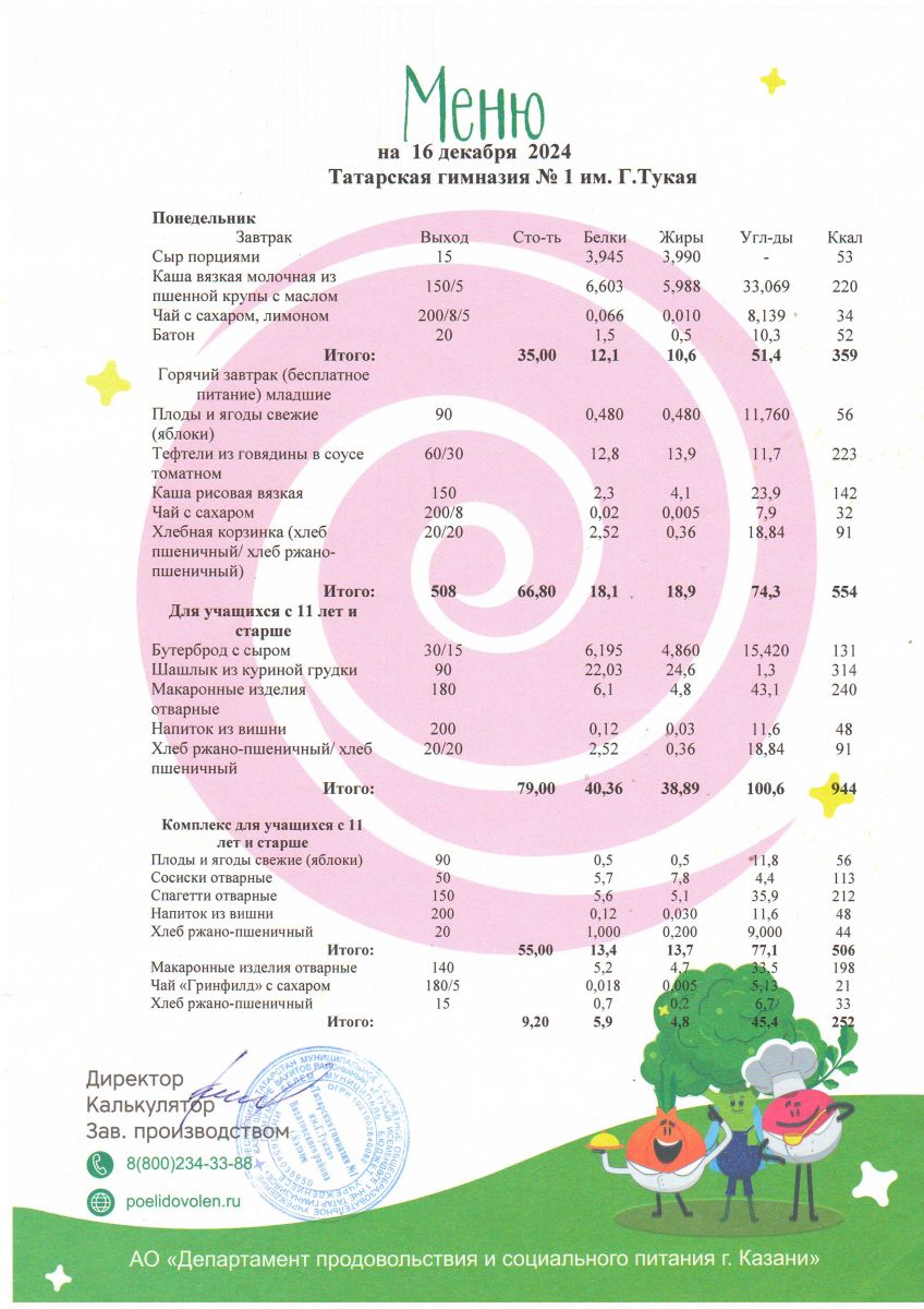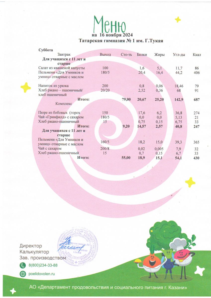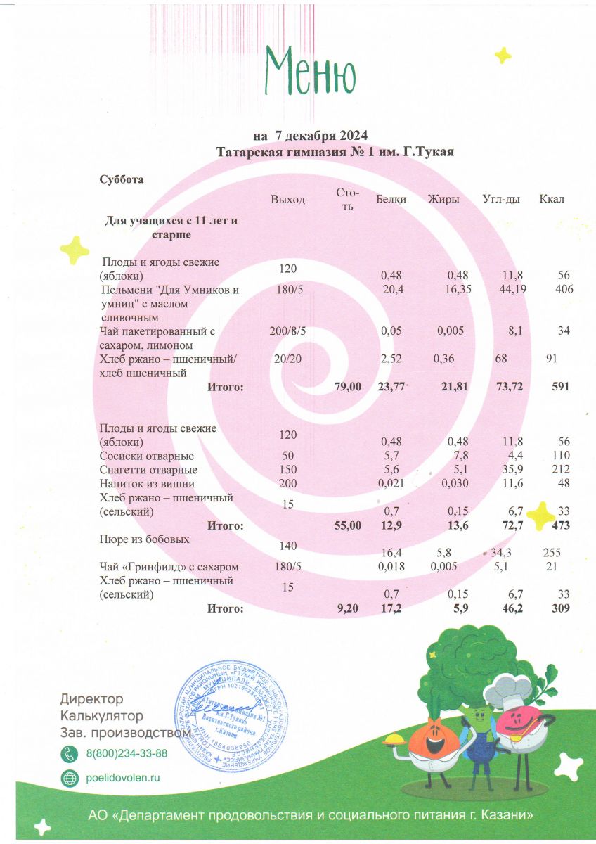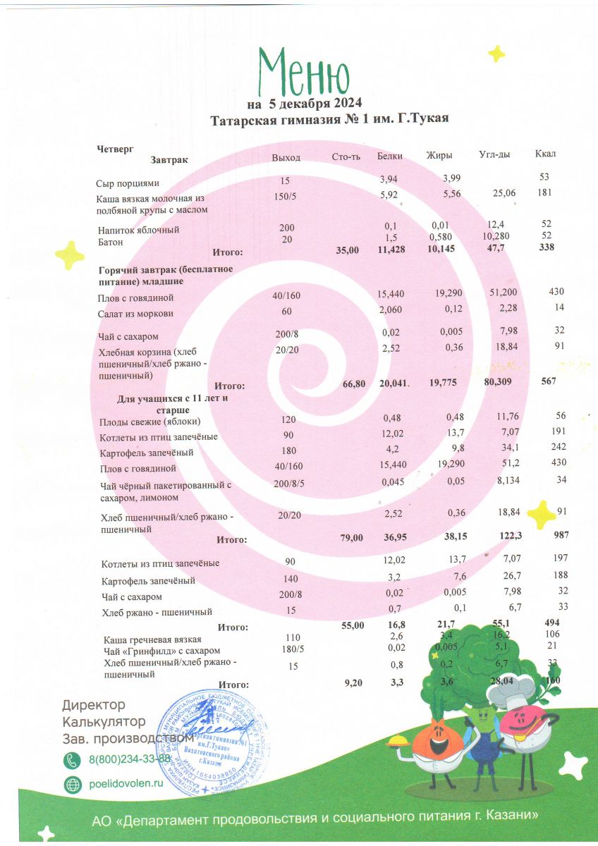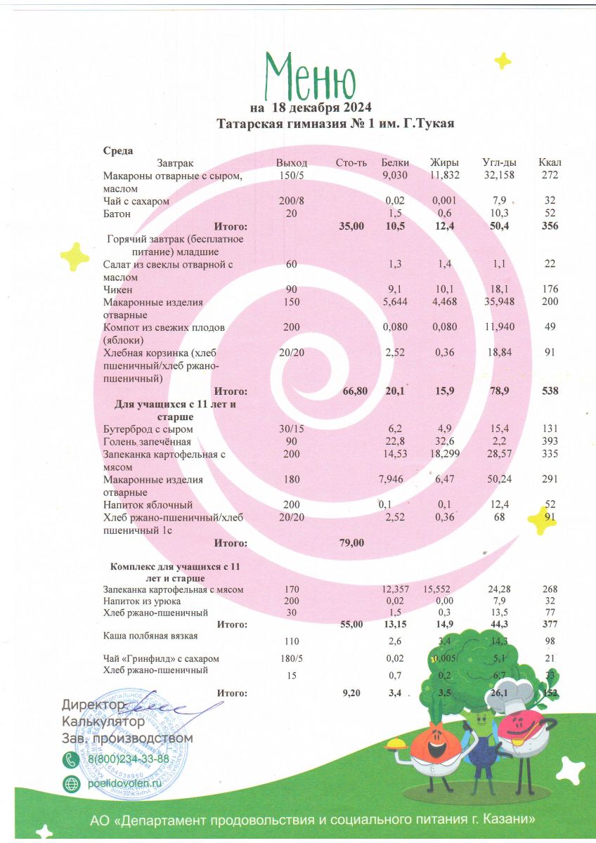 3. Диетическое меню: диетическое меню в образовательной организации отсутствует.