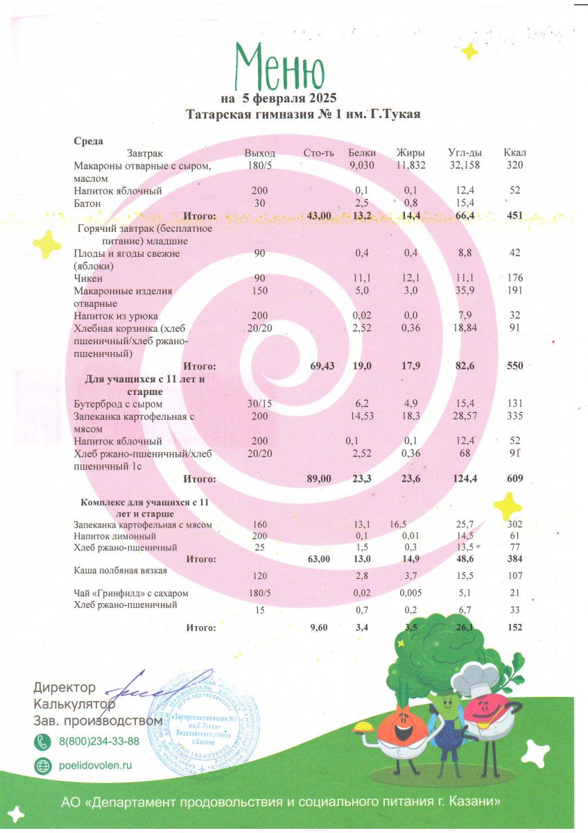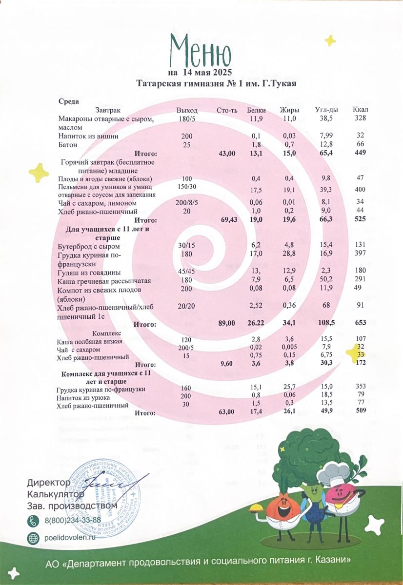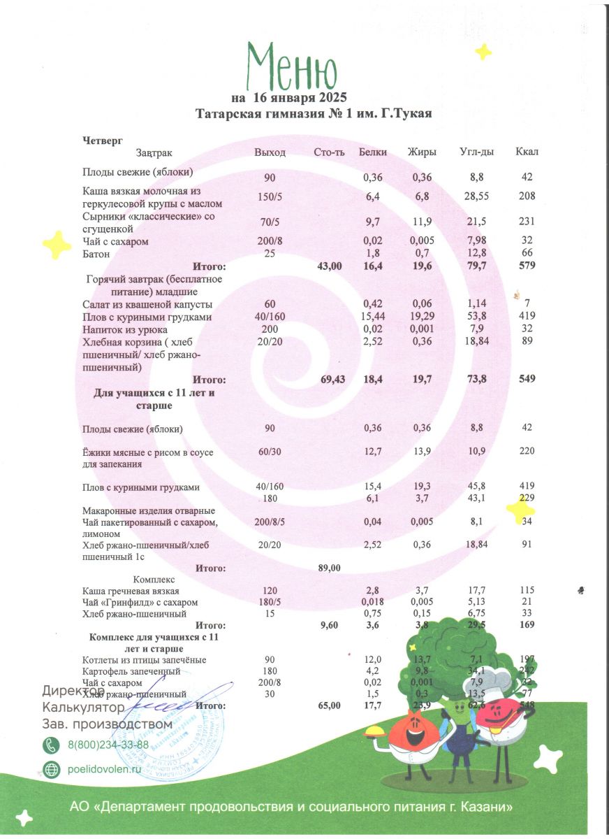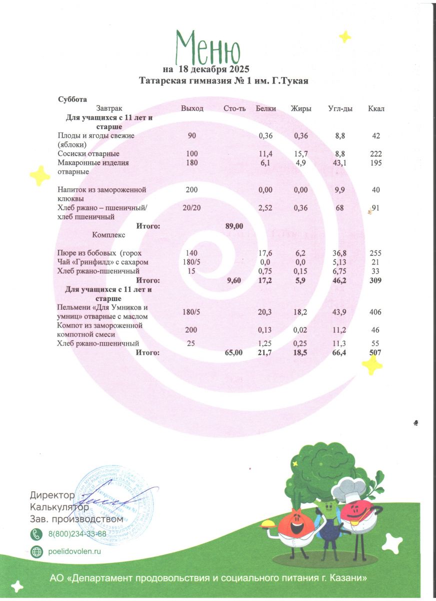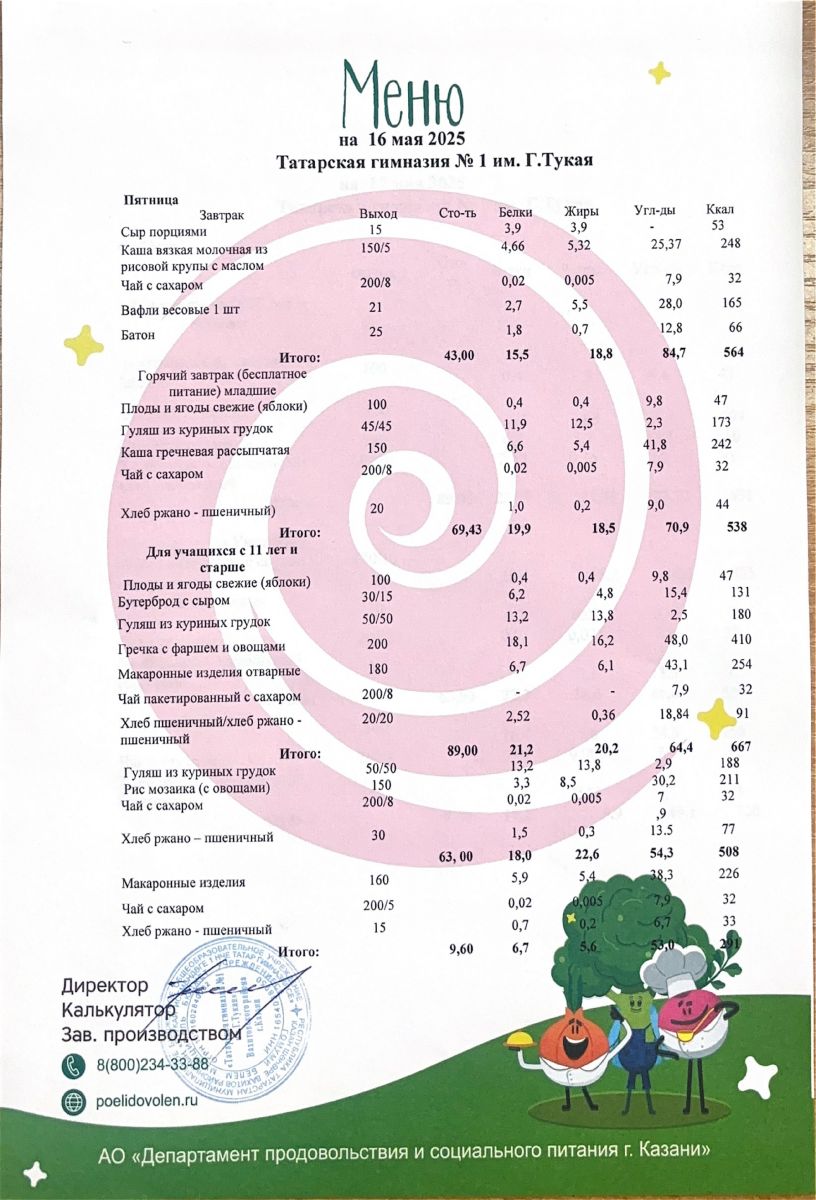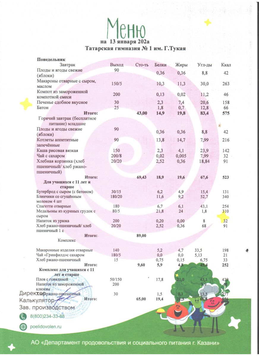 Услуги по организации питания в общеобразовательном учреждении МБОУ "Татарская имназия №1 им. Г. Тукая" г. Казани предоставляет АО "Департамент продовольствия и социального питания г. Казани" на основании договора, заключенного между образовательным учреждением и Депортаментом. АО «Департамент продовольствия и социального питания г.Казани»